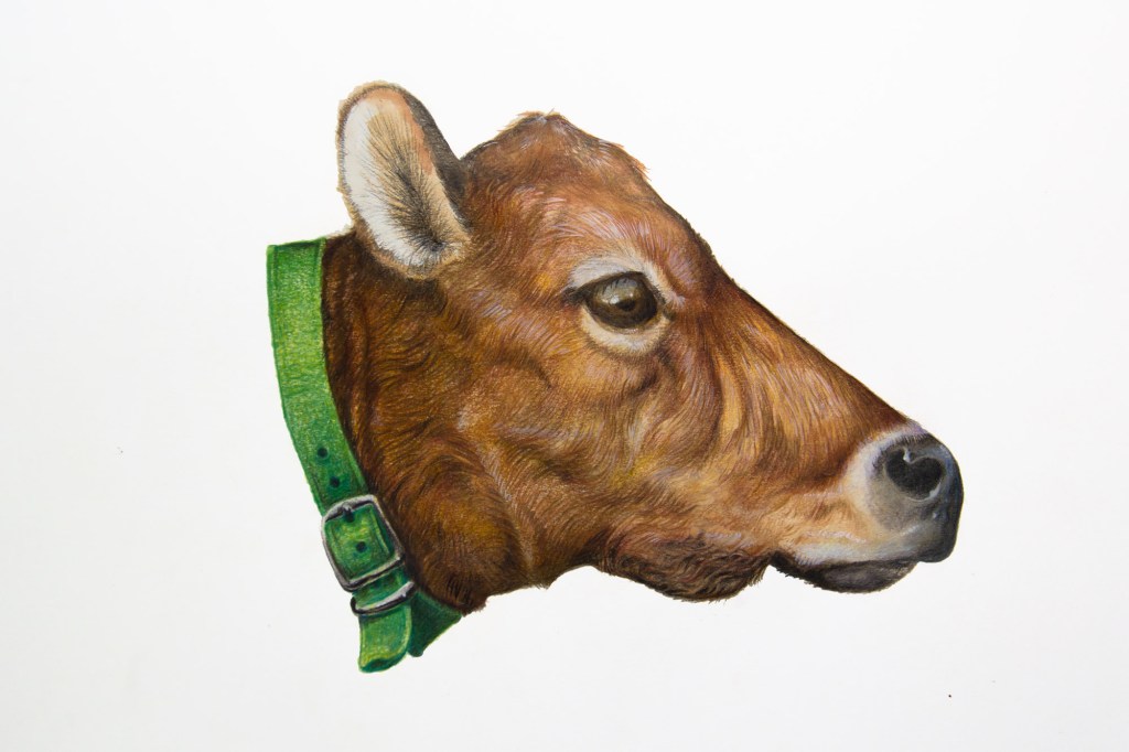 Länsisuomenkarja | West Finncattle illustration Länsisuomenkarjan edustajan profiilikuva värikynillä. Koko A3. Sideview of a traditional finnish cow. A3 Aiheeseen liittyy